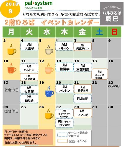パルひろば辰巳では「誰でもふらっと」立ち寄れる。憩いの場として 毎週 月・水曜日の10時~16時をフリータイムとして開放します。お友達とのおしゃべりやちょっとした相談などお気軽にお立ち寄りください。 企画参加のお申し込みは 電話かメールでご連絡く…