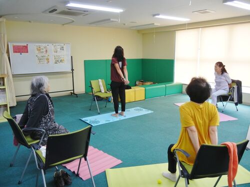 10月18日(金)曇 今日は午前中曇り空でした。 台風や秋雨前線と雨が多い天気ですが、皆さんお変わりございませんか? 3人の方が参加して椅子ヨガが開催されました。 ゴルフボールを使って、足裏に刺激を与え結構を良くします。 タオルを使って肩まわりのス…